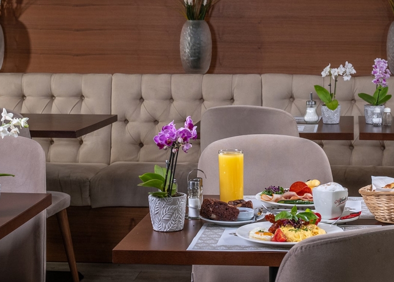 Indítsa jól a napját egy bőséges és megfelelően összeállított reggelivel éttermünk svédasztalos választékából! Vendégeink a nemzetközi reggeli kínálat hazai ízekkel kiegészített, igen széles büfé választékából állíthatják össze reggelijüket.